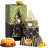 Inhoud Dit pakket bevat de volgende 5 artikelen: Groene thee, 10 zakjes Fudge, 150 gram Kerstballen melkchocolade, 100 gram Tulband cake duo choco vanille, 350 gram Verpakt in een feestelijke geschenkdoos