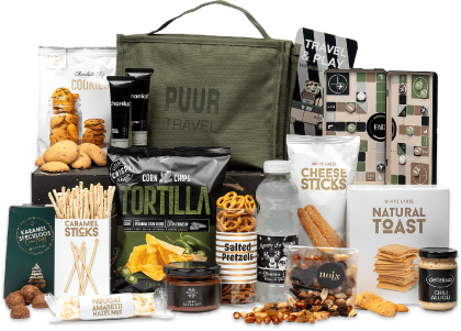 Inhoud Dit pakket bevat de volgende 20 artikelen: Set van 2 mokken pearl grey, 250 ml Chocolate chip cookies, 135 gram Honing zeezout pina's, 100 gram Cakerol hazelnoot, 300 gram Tappenade, 190 gram Chips, 90 gram Grissini, 125 gram Kaaspuntjes, 125 gram Doosje chocomelk, 20 gram, 5 st Mini marshmallows, 50 gram Hero B'tween pinda reep, 50 gram Mannekes, 100 gram Toast, 100 gram Tomatensoep, 450 ml Popcorn, 100 gram Nougat, 100 gram Borrelnoten, 70 gram Kaas baquettes, 75 gram Mocktail pina colada, 275 ml Paté iberico, 78 gram Fletcher hotels voordeelvoucher Verpakt in een feestelijke geschenkdoos, 39 x 29 x 17,5 cm