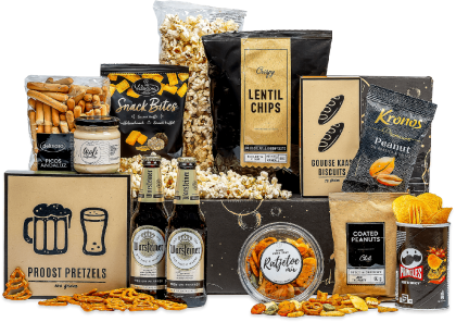 Inhoud Dit pakket bevat de volgende 19 artikelen: Kandelaar wit, 29h x ├ÿ, 9 cm Kaarsen maan, h, set van 3, 20 cm Servetten, set van 12 Chips, 90 gram Grissini, 125 gram Pannenkoekmix, 180 gram Stroopcup, 20 gram, 2 st Popcorn, 80 gram Sneeuwsterren, 100 gram Aioli, 190 gram Thee, 30 gram Pretzelsticks XXL, 200 gram Karamelsticks, 50 gram Toast, 100 gram Borrelnootjes, 60 gram Truffels, 50 gram Mocktail pina colada, 275 ml Kaaspuntjes, 125 gram Fletcher hotels voordeelvoucher Verpakt in een feestelijke geschenkdoos, 39 x 29 x 17,5 cm