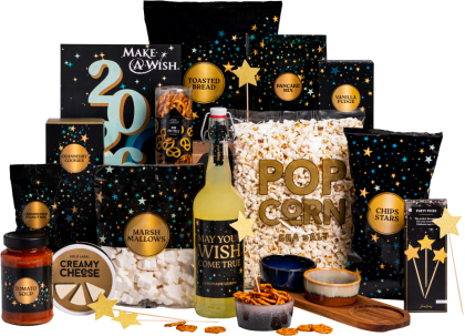 Inhoud Dit pakket bevat de volgende 12 artikelen: Solar lantaarn lamp, 27 x 14 cm Kaartspel "Weet jij het?" Sparkling grape, (alcoholvrij), 750 ml Servetten, 8 st Hartige zoutjes peper-zeezout, 60 gram Kaaswafelbolletjes, 50 gram Pretzels, 40 gram Pinda's gezouten, 50 gram Chocolade hazelnoot pralines, 110 gram Chips Lay's sensations thai sweet chilli, 40 gram Kerstkoekjes, 80 gram Verpakt in een feestelijke geschenkdoos, 39 x 29 x 17,5 cm