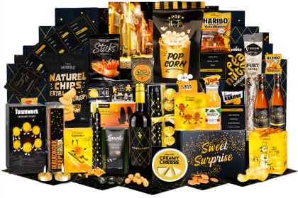 Inhoud Dit pakket bevat de volgende 29 artikelen: Etagere Ø, 20 cm Kaartspel "Weet jij het?" Geschenkdoos met strik, 21 x 8,5 x 4 cm Dinerkaarsen, 20 cm, 2 st Waxines, 4 st Servetten, 8 st Rode wijn, Tempranillo, 0,75 ltr Bier, Hertog Jan, 0,30 ltr, 2 st Schulp appelsap, 0,2 ltr Richello's chocolade, 100 gr, 8 st Hartige zoutjes peper-zeezout, 60 gram Kaaswafelbolletjes, 50 gram Krokante toast, 75 gram Pretzels, 40 gram Cake bakmix, 350 gram Stroopwafel, 64 gram, 2 st Haribo goudbeertjes, 75 gram Pinda's zout, 100 gram Kaaspuntjes, 125 gram Ribbelchips, 90 gram Twix, 50 gram Kerstkoekjes, 80 gram Verpakt in een feestelijke geschenkdoos, 39 x 29 x 12,6 cm