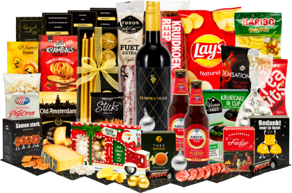 Inhoud Dit pakket bevat de volgende 65 artikelen: Drinkglazen, 4 st Coca Cola fles, 20 cl, 2 st Lay's Paprika chips, 100 gram, 2 st Lay's Naturel, 100 gram Lay's chips Thai Sweet Chili, 40 gram M&M Crispy zakje, 36 gram, 4 st Pepsi original, 33 cl, 2 st Kerst chocolade, 40 gram Ritter Sport extra fijne melkchocolade, 100 gram Kitkat reep, 41,5 gram, 2 st Pringles Original, 40 gram Doritos Bits Zero's sweet paprika, 30 gram, 2 st Fortuin Wilhelmina pepermunt, 65 gram Haribo Happy Cola, 75 gram Sultana Fruistbicuits naturel, 43 gram Smoeltjes Speculaasjes, 25 gram Haribo Starmix, 75 gram Autodrop Total Loss, 85 gram Bolletje Zoute Pepsels, 180 gram Redband Drop Fruit duo's zakjes 100, 2 st Dutch diamond stroopwafel, 64 gram, 4 st Duyvis gezouten pinda's, 60 gram Mars reep, 51 gram, 2 st Oreo, 55 gram, 4 st Speculoos koekjes, 25 gram Fortuin Wilhelmina pepermunt, 65 gram, 2 st Dunicec mini brezel poppy, 70 gram Doritos Bits twisties Honey BBQ, 30 gram, 3 st Maltesers, 37 gram, 2 st Twix, 50 gram, 2 st Oreo koek, 66 gram Côte d'or mini, 10 gram Skittles Fruit, 45 gram, 3 st Dutch diamond stroopwafel, 64 gram, 2 st Choco Prince Vanille, 28,5 gram, 2 st Kerstkaart met feestelijke opdruk 'Happy Holidays' Verpakt in een feestelijke geschenkdoos 39 x 29 x 23, 2 cm
