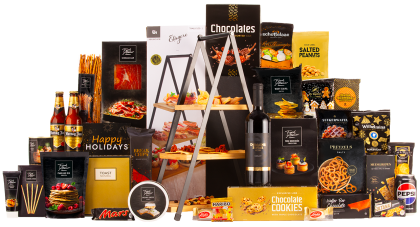 Inhoud Dit pakket bevat de volgende 34 artikelen: Etagere Ø, 20 cm Geschenkdoos met strik, 21 x 8,5 x 4 cm Dinerkaarsen, 20 cm, 2 st Waxines, 4 st Kaartspel "Weet jij het?" Servetten, 8 st Rode wijn, Tempranillo, 0,75 ltr Bier, Steenberge, 0,25 ltr, 2 st Schulp appelsap, 0,2 ltr Richello's chocolade, 100 gr, 8 st Fuet worst, 150 gram Hartige zoutjes peper-zeezout, 60 gram Kaaswafelbolletjes, 50 gram Krokante toast, 75 gram Pretzels, 40 gram Zwarte thee, 5 st Marshmallows BBQ set, 250 gram Popcorn, 70 gram Pinda's gezouten, 50 gram Ribbelchips gezouten, 90 gram Stroopwafel, 64 gram, 2 st Haribo goudbeertjes, 75 gram IJsmix vanille, 125 gram Chips Lay's sensations thai sweet chilli, 40 gram Old amsterdam wigstuk, 150 gram Kerstkoekjes, 80 gram Verpakt in een feestelijke geschenkdoos, 39 x 29 x 23,2 cm