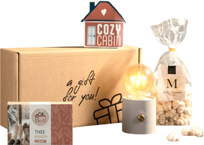 Inhoud Dit pakket bevat de volgende 10 artikelen: Mok smiley, 340 ml Caramel candy tree, 65 gram Mallow twist, 90 gram Koek choco kerstboom, 80 gram Hot chocobomb marshmallows, 20 gram Corn chips, 75 gram Hazelnoot triangle, 110 gram Hero B'tween reep, 50 gram Thee, 2 gram, 5 st Popcorn, 100 gram Fletcher hotels voordeelvoucher Verpakt in een feestelijke geschenkdoos, 39 x 29 x 10,5 cm