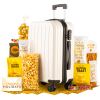 Inhoud Dit pakket bevat de volgende 16 artikelen: Handbagage koffer/trolley 20 inch, 38 ltr, 55 x 35 x 21 cm Gezouten Pinda's, 100 gram Popcorn zoet, 100 gram Dutch diamond stroopwafel duopack, 64 gram, 2 st Ribbelchips, 90 gram Pretzelsticks XXL, 200 gram Party Toast, 100 gram Pindamix karamel, 50 gram Kaaspuntjes, 125 gram Chocolade kerstbal, 150 gram twix single, 50 gram Lonka Nougat caramel, 12 gram, 2 st Kerstkaart met feestelijke opdruk 'Happy Holidays' Verpakt in een feestelijke geschenkdoos, 58 x 24 x 24 cm