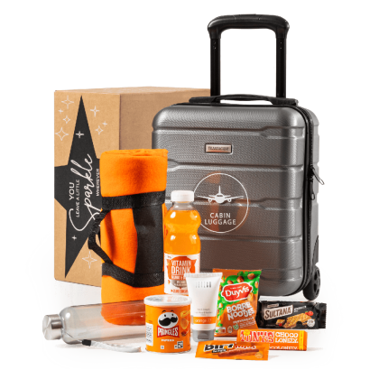 Inhoud Dit pakket bevat de volgende 15 artikelen: Trendy geïsoleerde rode thermos beker met handvat en rietje, 800 ml Chips Handcooked chips salt, 125 gram XXL pretzelsticks, 200 gram Muesli, 250 gram Kruidkoek, 145 gram Pancake mix, 250 gram Aardbei jam, 230 gram Tomatensoep, 450 ml Bosvruchten thee, 30 gram Koekjes triple chocolate, 150 gram Toblerone white choco honey & almond, 100 gram Popcorn zout, 125 gram Mint en drop ballen, 100 gram Marshmallows vanille, 150 gram Verpakt in een feestelijke geschenkdoos, 390 x 290 x 130 mm