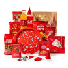 Inhoud Dit pakket bevat de volgende 14 artikelen: Metalen dien/serveerblad met kerstprint, ø, 32 x 1,5 cm Bestekhouder kerstmutsen, 4 st LED raamsticker slinger kerst Schulp appelsap, 75 cl Ribbelchips zout, 90 gram Dunicec maxi brezel salt, 200 gram Gezouten pinda's, 100 gram Popcorn zoet, 100 gram Atlanta cakemix, 400 gram Truffels choco speculaas & karamel, 50 gram Haverkoeken, 135 gram Candy canes, 150 gram Marshmallows, 140 gram Verpakt in een feestelijke geschenkdoos, 390 x 290 x 175 mm