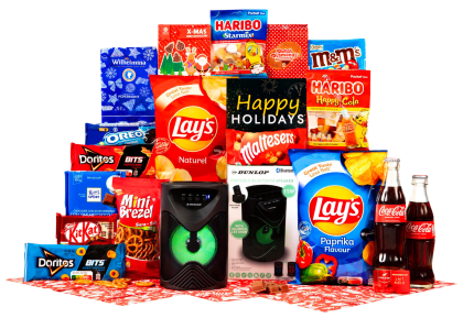 Inhoud Dit pakket bevat de volgende 12 artikelen: Coca cola fles, 20 cl, 2 st Maltesers, 37 gram Lay's Naturel chips, 100 gram Lay's chips Thai Sweet Chili, 40 gram Kerst chocolade, 40 gram Doritos Bits twisties Honey BBQ, 30 gram Dunicec mini brezel poppy, 70 gram Côte d'or mini, 10 gram, 2 st Kerstkaart met feestelijke opdruk 'Happy Holidays' Verpakt in een feestelijke geschenkdoos, 31 x 20 x 14 cm