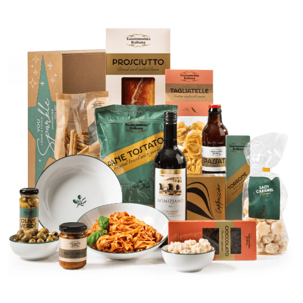Voorbeeld kerstpakket: Stel je voor, een kerstcadeau dat gevuld is met authentieke Italiaanse producten, zoals verse pasta’s, een fles premium olijfolie, een pot truffeltapenade en een selectie van Italiaanse kruiden. Voeg daar een kookboek met Italiaanse recepten aan toe, en je hebt alles in huis om een perfect Italiaans kerstdiner te bereiden. Dit soort attenties zorgen ervoor dat je niet alleen kunt genieten van het koken, maar ook van het heerlijke eindresultaat.