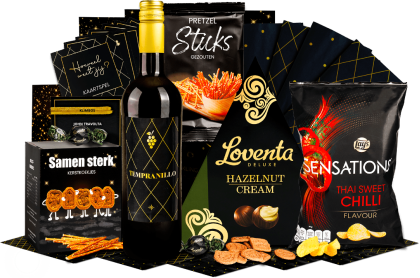 Inhoud Dit pakket bevat de volgende 17 artikelen: Etagere Ø, 20 cm Kaartspel "Weet jij het?" Rode wijn, Tempranillo, 0,75 ltr Bier, Steenberge, 0,25 ltr Servetten, 8 st Richello's chocolade, 100 gr, 8 st Zwarte thee, 5 st Kaaswafelbolletjes, 50 gram Krokante toast, 75 gram Pretzels, 40 gram Koekreep, 110 gram Popcorn, 70 gram Pinda's gezouten, 50 gram Ribbelchips gezouten, 90 gram Haribo goudbeertjes, 75 gram Kerstkoekjes, 80 gram Verpakt in een feestelijke geschenkdoos, 39 x 29 x 17,5 cm