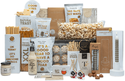 Inhoud Dit pakket bevat de volgende 24 artikelen: Schaal 3-vak, 23,5 x 8 cm Steenberge Premium Pilsner, 25 cl, 2 st Juver sinaasappelsap, 20 cl Juver appelsap, 20 cl Karamelsticks, 50 gram Toast, 100 gram Beautiful Nuts pinda's, 50 gram Suikerwafel, 55 gram Zwarte thee, 20 zakjes Haribo Goudbeertjes, 75 gram De La Digue boterwafels, 30 gram, 3 st Galetten wafel, 33,3 gram Fortuin Wilhelmina pepermunt, 65 gram Twix, 50 gram Lay's Sensations Thai Sweet Chilli, 40 gram Mars, 51 gram Borrelnoten, 70 gram Mallowmix, 25 gram Popcorn zoet, 70 gram Mix pretzels, 200 gram Chocolade pralines hazelnoot crème, 110 gram Gratis kaart met eindejaarspuzzel Verpakt in een feestelijke geschenkdoos, 390 x 290 x 130 mm